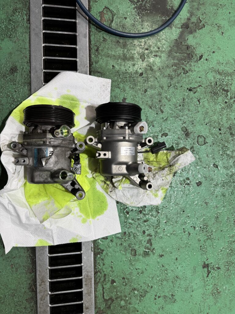 コンプレッサー本体は車両の下部にあり、脱着が少し難しかったです。。。