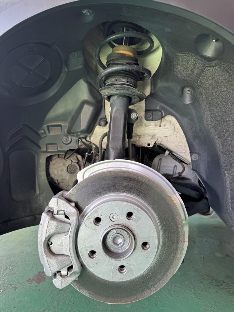 交換後の写真になってしまいましたがショック本体を外し分解して組み立て車両に取り付けをしました。